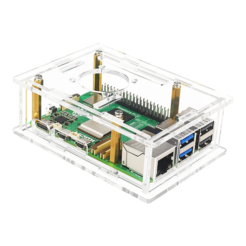 For Raspberry Pi 5 Acrylic Case Copper/Aluminium Heatsinks Development Board Protective Shell W/ Cooling Fan