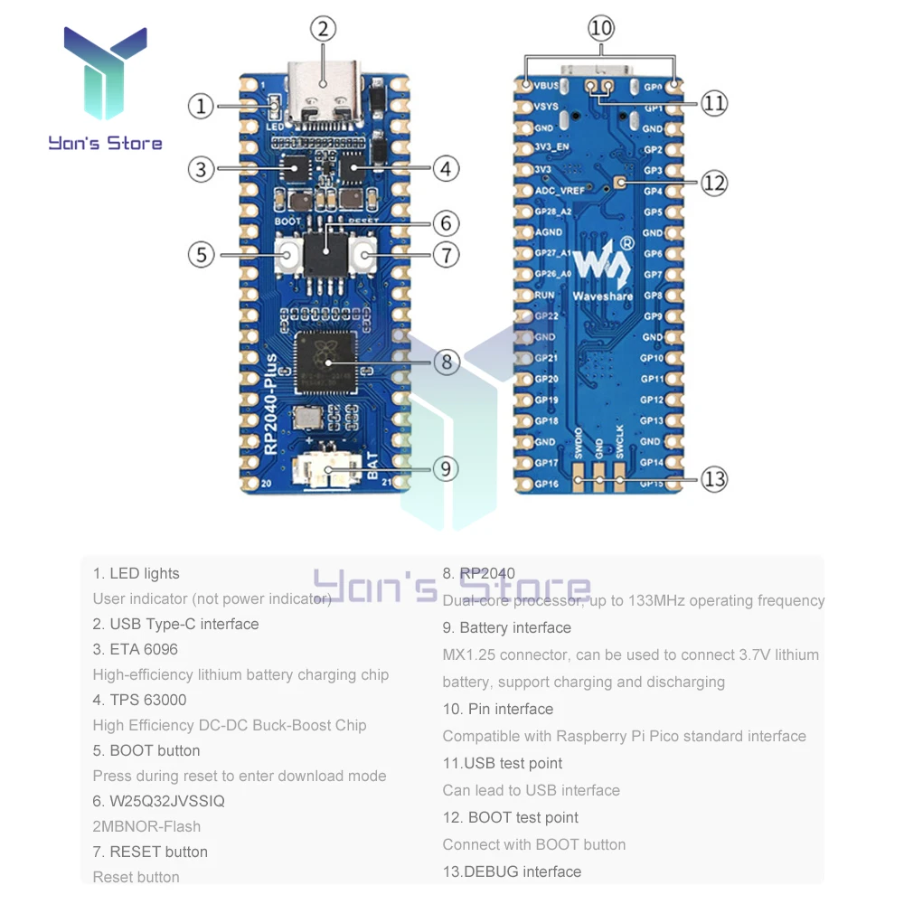 For Raspberry Pi Pico RP2040 Dual-core Processor Plus Microcontroller Upgrade Version 4MB Flash Capacity