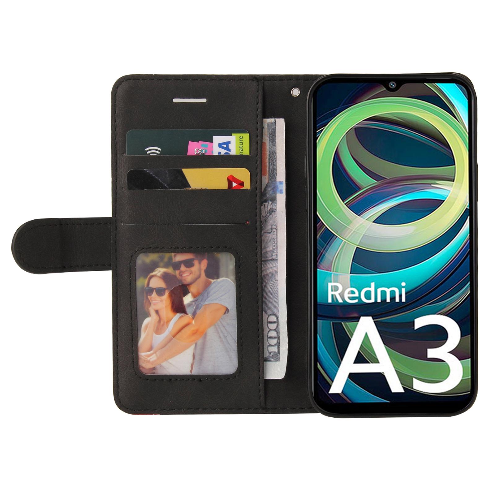 For Xiaomi Redmi A3/Poco C61 4G Leather Case Wallet Stand Color Splicing Phone Cover Black