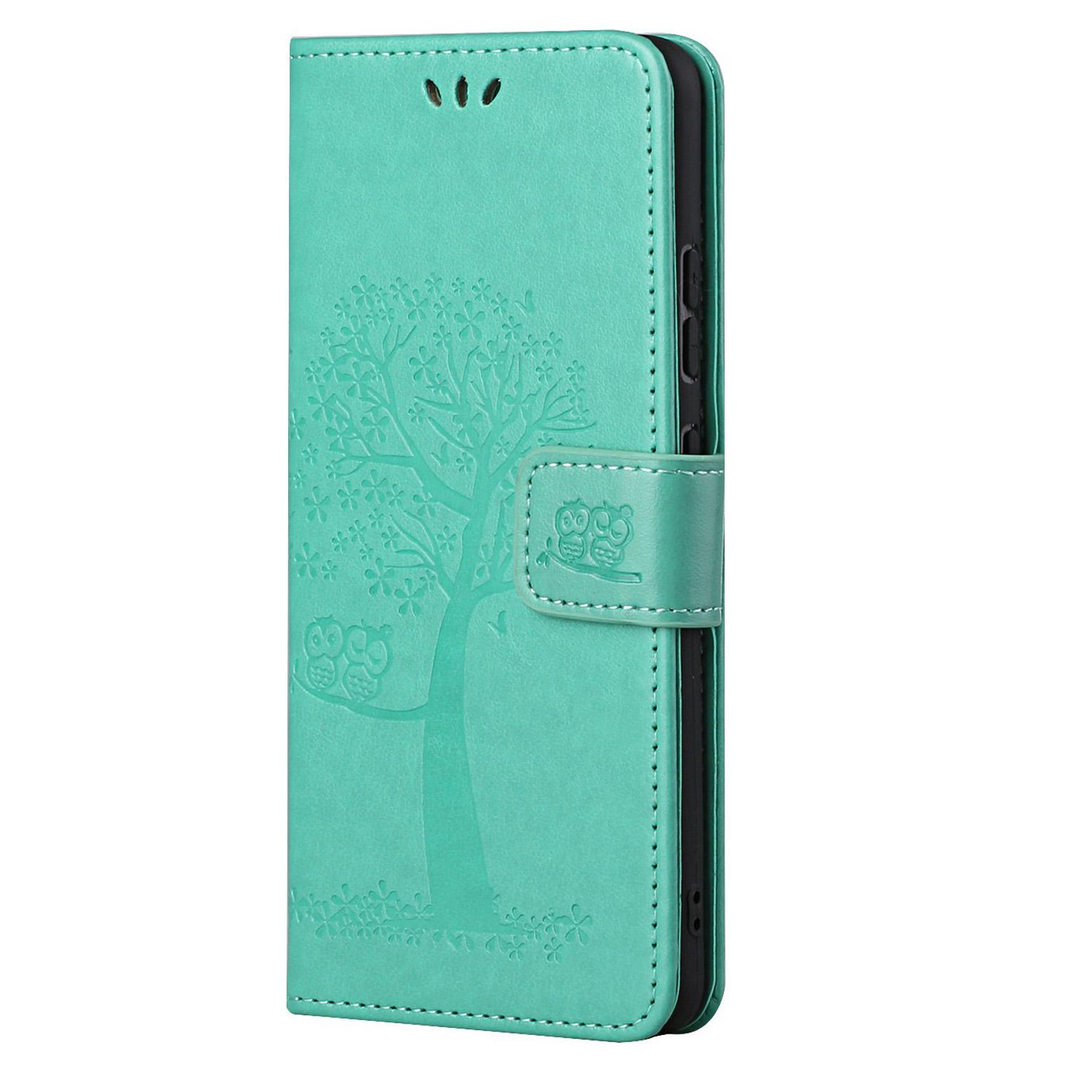 For Xiaomi Redmi Note 11 4G (Qualcomm)/Redmi Note 11S 4G Wallet Phone Case Owl Tree Pattern Imprinted Stand Flip Protective Cover with Strap Grey