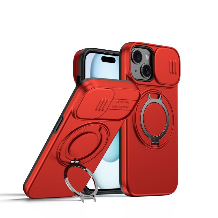 For iPhone 14 / 13 Camera Sliding Shield Magnetic Rotation Holder Phone Case(Red)