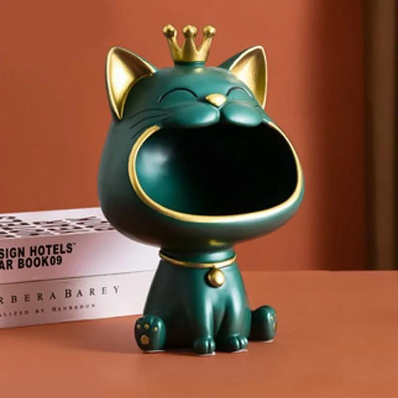 Fortune Crown большой рот кошка входной лоток для хранения ключей декоративное украшение, легкая роскошная скульптура в подарок на новоселье зелёный