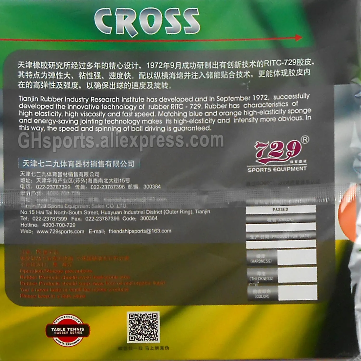 Friendship 729 RITC CROSS Classic Table Tennis Rubber Pips-In Original 729 Ping Pong Sponge