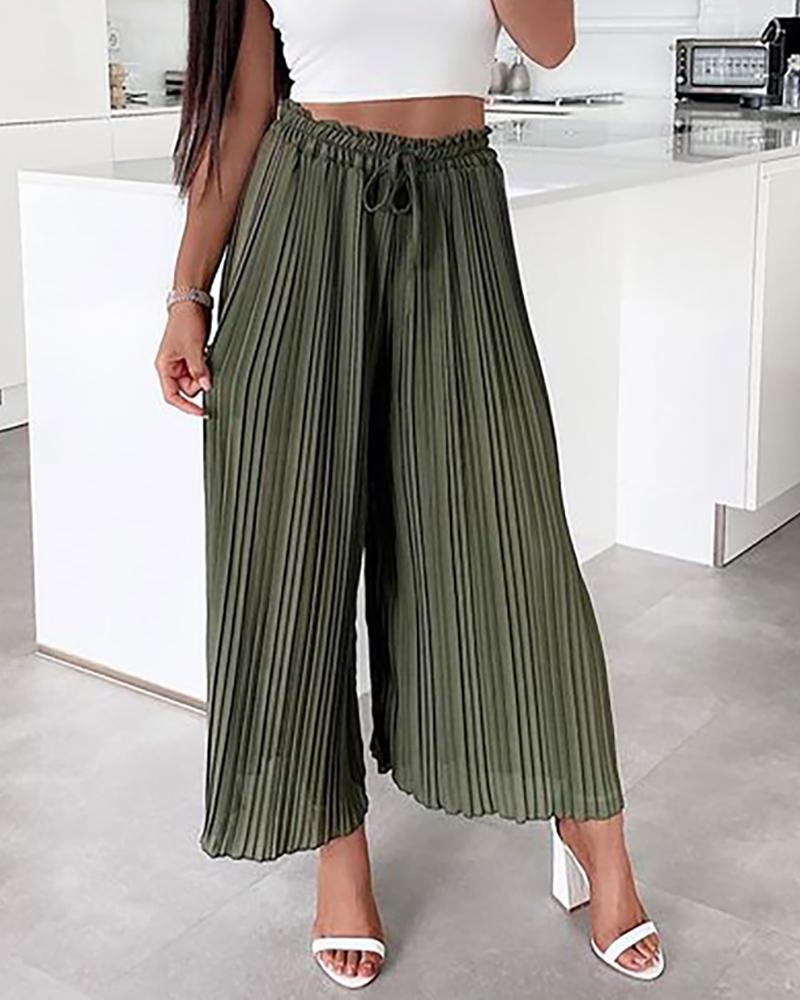 Frill Hem Drawstring Pleated Wide Leg Pants, Green