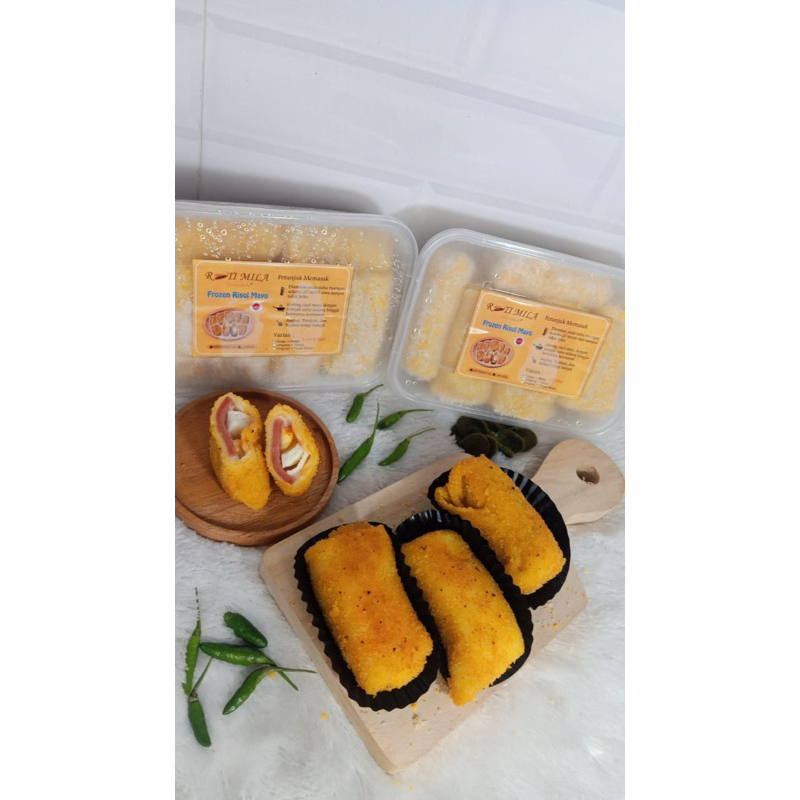 - Risoles dengan isian Mayonaise, daging asap, telur, saus, dan timun (optional)