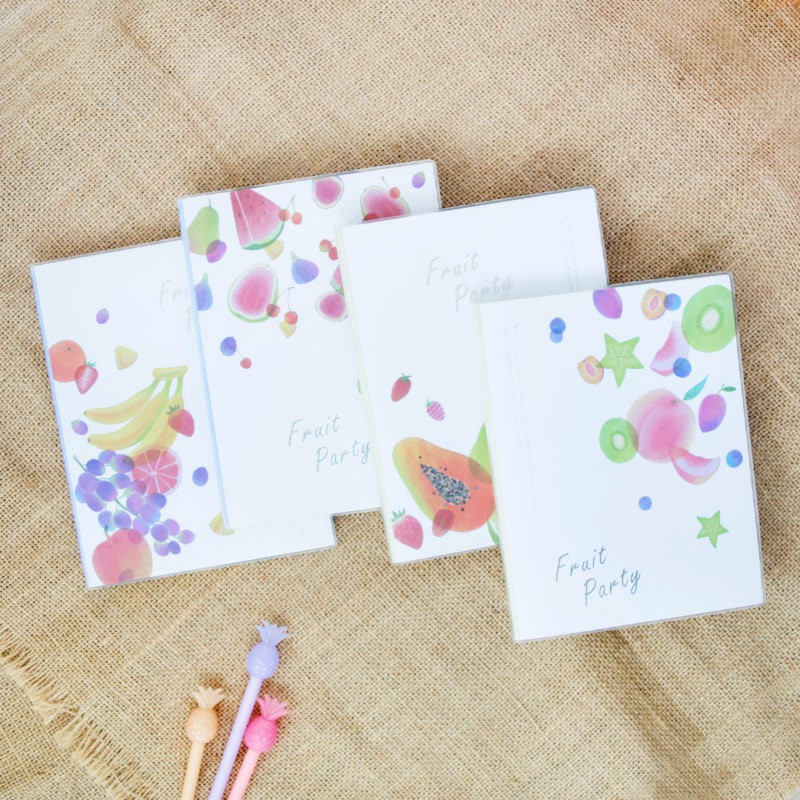 Buku bertema Fruit Party kini hadir dalam versi tebal dengan 3 ukuran berbeda yang bisa kamu pilih sesuai dengan kebutuhan. Dengan isi banyak kertas bergaris di dalamnya, buku ini sangat pas digunakan sebagai buku catatan kegiatan kamu sehari-hari. Setiap buku ini memiliki sampul plastik doff untuk menjaga dari basah dan debu.