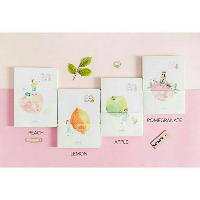Buku tulis berisi dua jenis kertas -polos dan bergaris- dengan sampul berhiaskan ilustrasi buah dan anak perempuan dalam warna dasar pastel yang lembut. Dijilid dengan kombinasi jahitan benang dan lem, buku mudah dibuka 180 derajat dan kertas di dalamnya tidak mudah lepas. Bentuknya praktis dan kokoh berkat sampul karton tebalnya, tidak mudah lecek dan atau terlipat secara tidak sengaja.