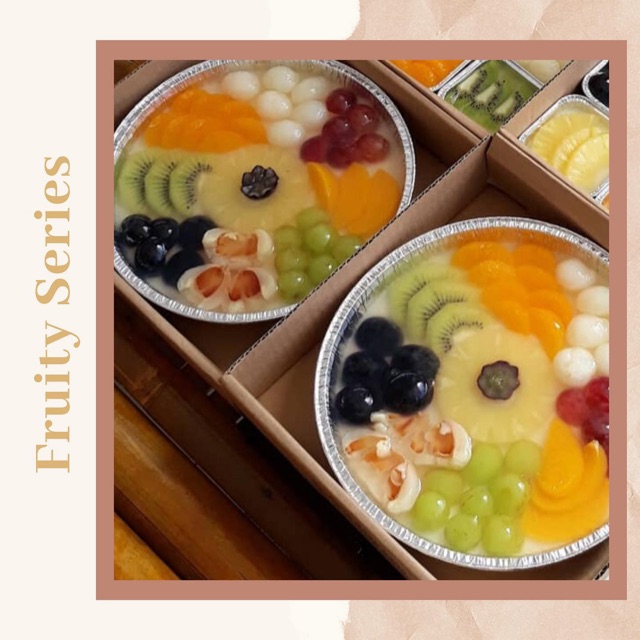 (topping buah mix random : strawberry, leci, kiwi, anggur, jeruk mandarin)