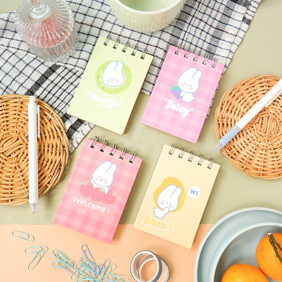 Buku notes imut-imut ini andalan mereka yang tidak ingin ketinggalan catatan. Ukurannya yang pas di saku serta dibekali isi kertas yang cukup banyak membuat notepad ini praktis digunakan di manapun dan untuk waktu yang lama. Pilih dari 4 ilustrasi sampul kelinci putih lucu yang ditemani buah-buahan.