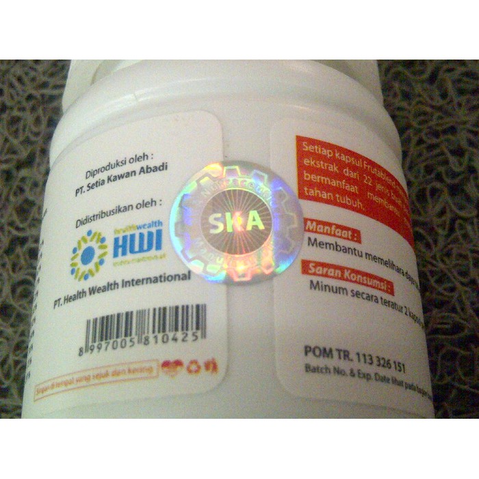 ** Sekarang Fruttablend Ori ada logo SKA pd kapsulnya, terbuat dr tinta food grade & cangkangnya dr gelatin sapi, jd sgt aman dikonsumsi jangka panjang !! Liat pic ya !!! Terkadang dari kantor nya dlm 1 karton ada yg kapsul lama, kita tdk bs cek krn semua segel, jadi no complain !!!
