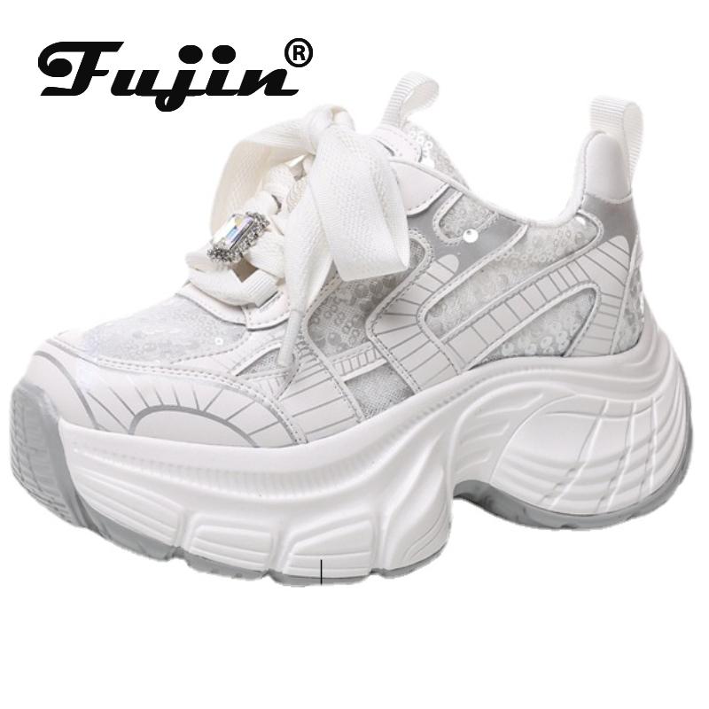 Fujin 8.5 см Air Mesh Синтетическая микрофибра Кожа Женские плоские туфли Летние этнические кроссовки на толстой дышащей платформе с полым клином 34