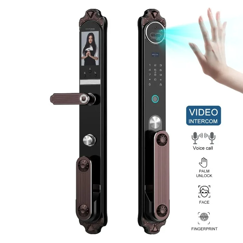 Full Aluminum Waterproof Smart Door Lock Video Call Face Recognition Password Card Key