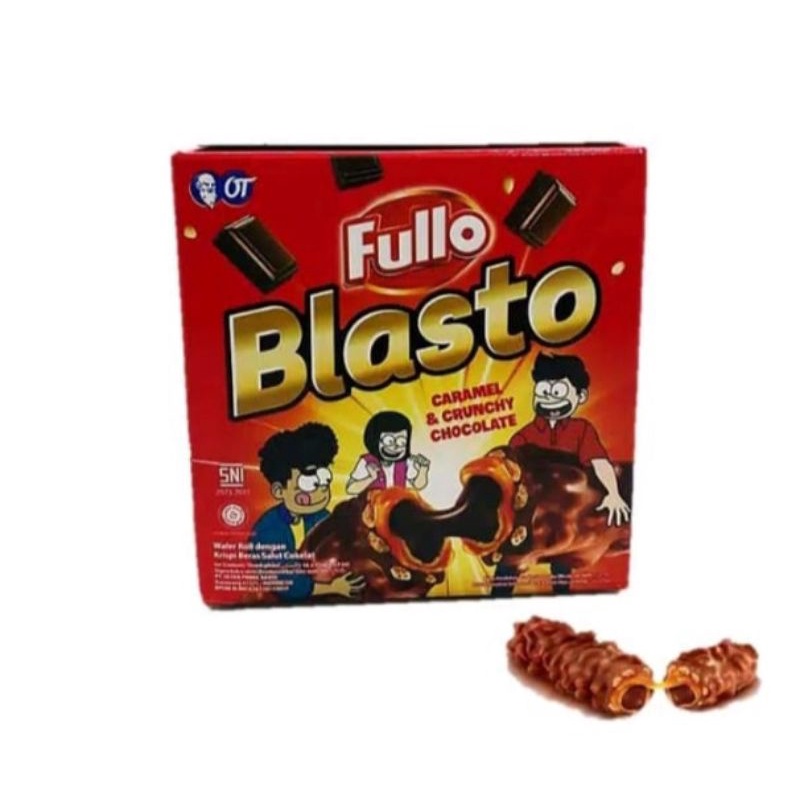 Anda akan merasakan rasa yang khas dalam setiap lapisan ketika dimakan. Fullo Blasto adalah wafer coklat tebal dengan caramel yang lezat dan ditaburi Rice crispy yang gurih bercampur menjadi sensasi rasa yang luar biasa dan tidak dapat terlupakan.