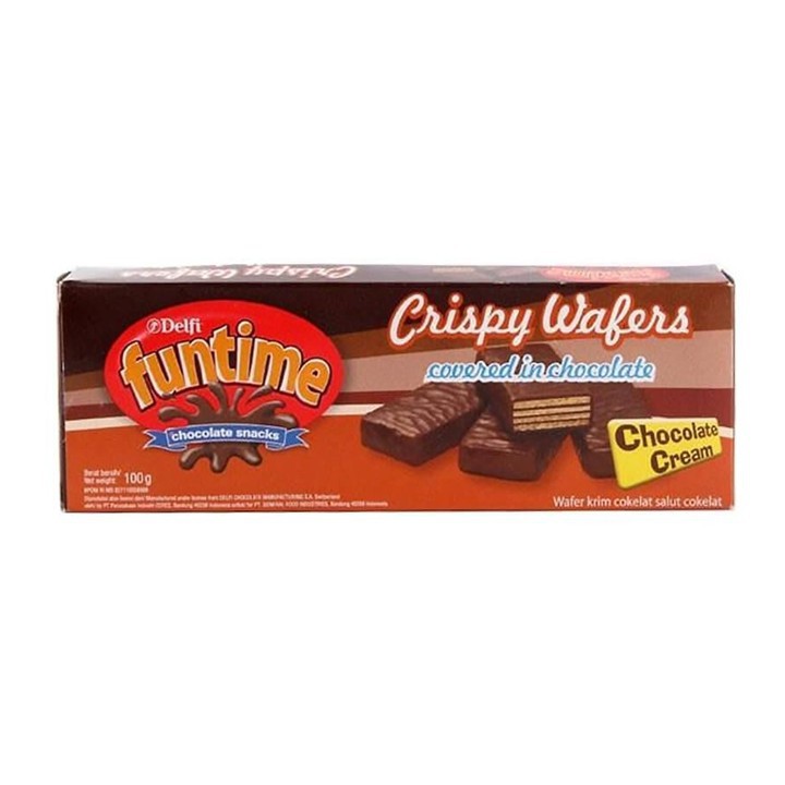 Funtime Wafer Coklat 100gr wafer persembahan funtime dengan variant rasa yang enak terbuat dari bahan berkualitas cocok untuk di nikmati dengan teman dan keluarga di saat bersantai