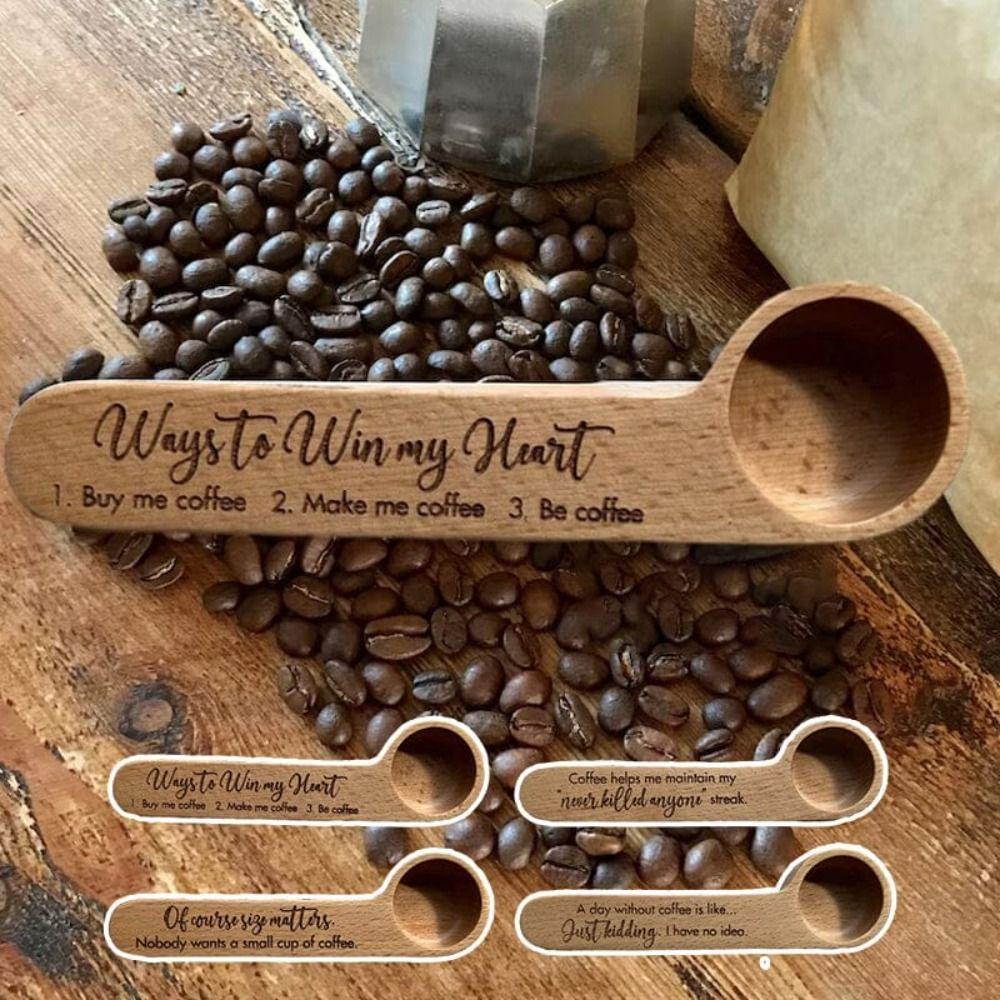 Funy Coffee Scoop And Bag Clip Wooden Kitchen Accessories New Engraved Coffee Scoop