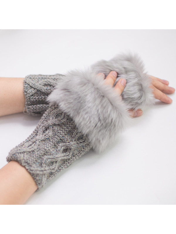 Fur Rhombus Fingerless Gloves