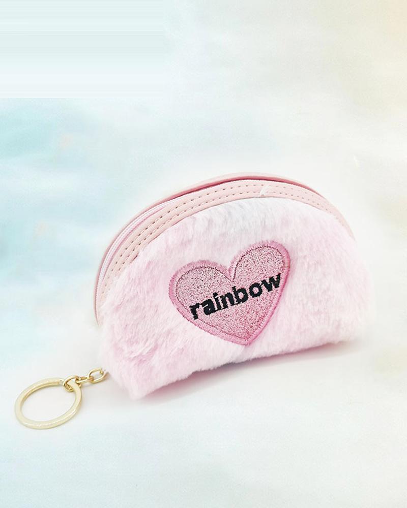 Fuzzy Heart Pattern Zipper Design Key Ring Bag, Pink