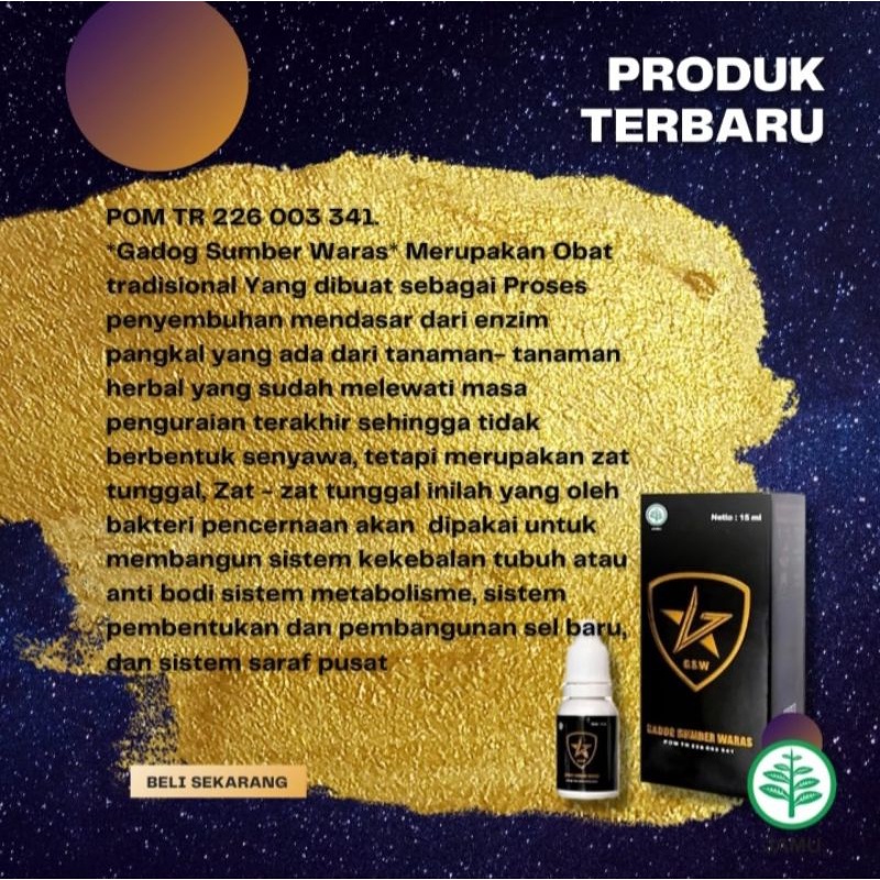 Gadog Sumber Waras Merupakan Obat tradisional Vang dibuat sebagai Proses penyembuhan mendasar dari enzim pangkal yang ada dari tanaman-tanaman herbal yang sudah melewati masa penguraian terakhir sehingga tidak berbentuk senyawa, tetapi merupakan zat tunggal, Zat-zat tunggal inilah yang oleh bakteri pencernaan akan dipakai untuk membangun sistem kekebalan tubuh atau anti bodi sistem metabolisme, sistem pembentukan dan pembangunan sel baru, dan sistem saraf pusat
