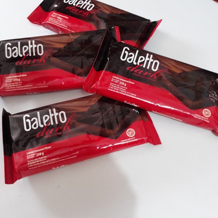 Galetto DARK coklat merupakan coklat masak yang siap diolah maupun langsung dimakan diformulasikan untuk aplikasi coklat yang mudah cocok untuk hiasan kue, dicetak, diserut, isian kue dan lainnya.