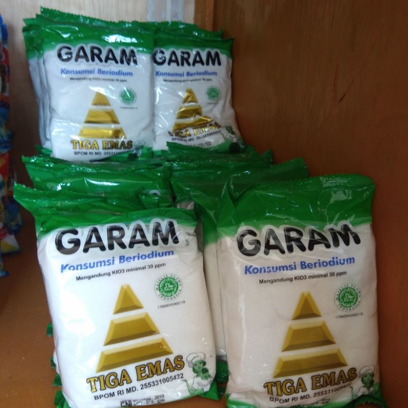 Garam Tiga Emas adalah garam konsumsi beryodium, cocok untuk segala masakan maupun untuk kue dan makanan ringan. mutu dan kebersihan terjamin, dapat dipakai langsung sebagai bumbu dapur maupun di meja makan