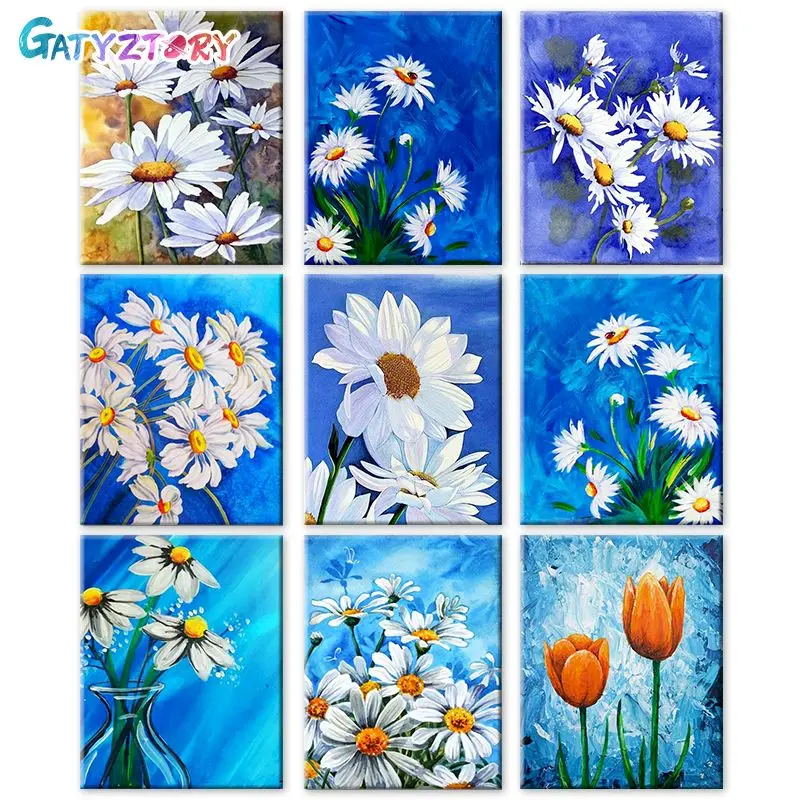 GATYZTORY Набор для раскрашивания по номерам, цветы для взрослых, ручная роспись, рамка «сделай сам», картина по номеру, белый цветок, украшение д...