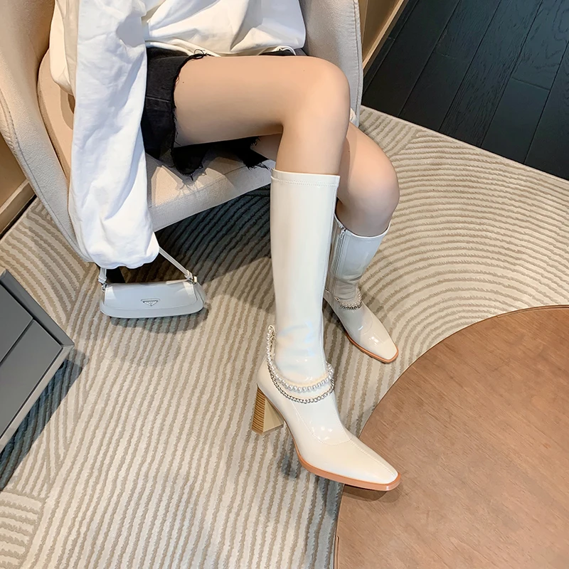 GD-time женские теплые длинные сапоги до колена, женские сапоги на платформе, толстый каблук, искусственная кожа, мягкая молния, модная зимняя о...
