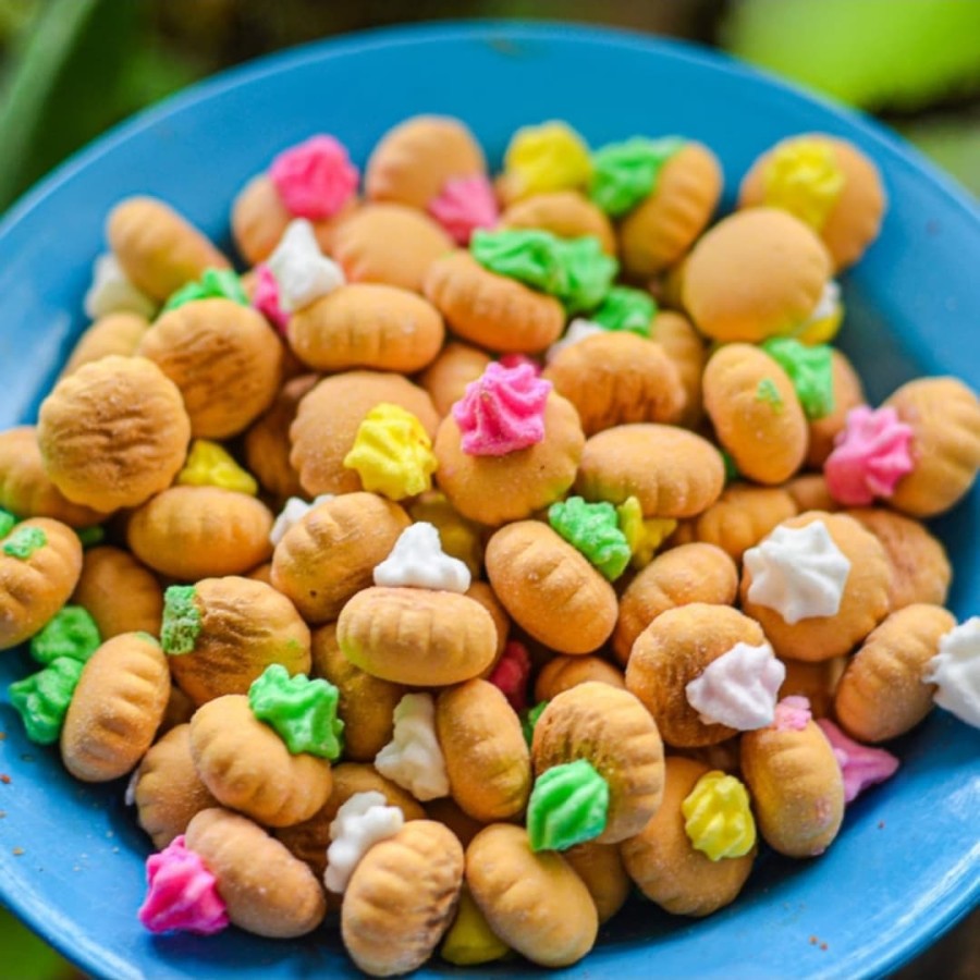 Sangat disukai anak-anak, karena di kue nya ada gula gula warna warni.