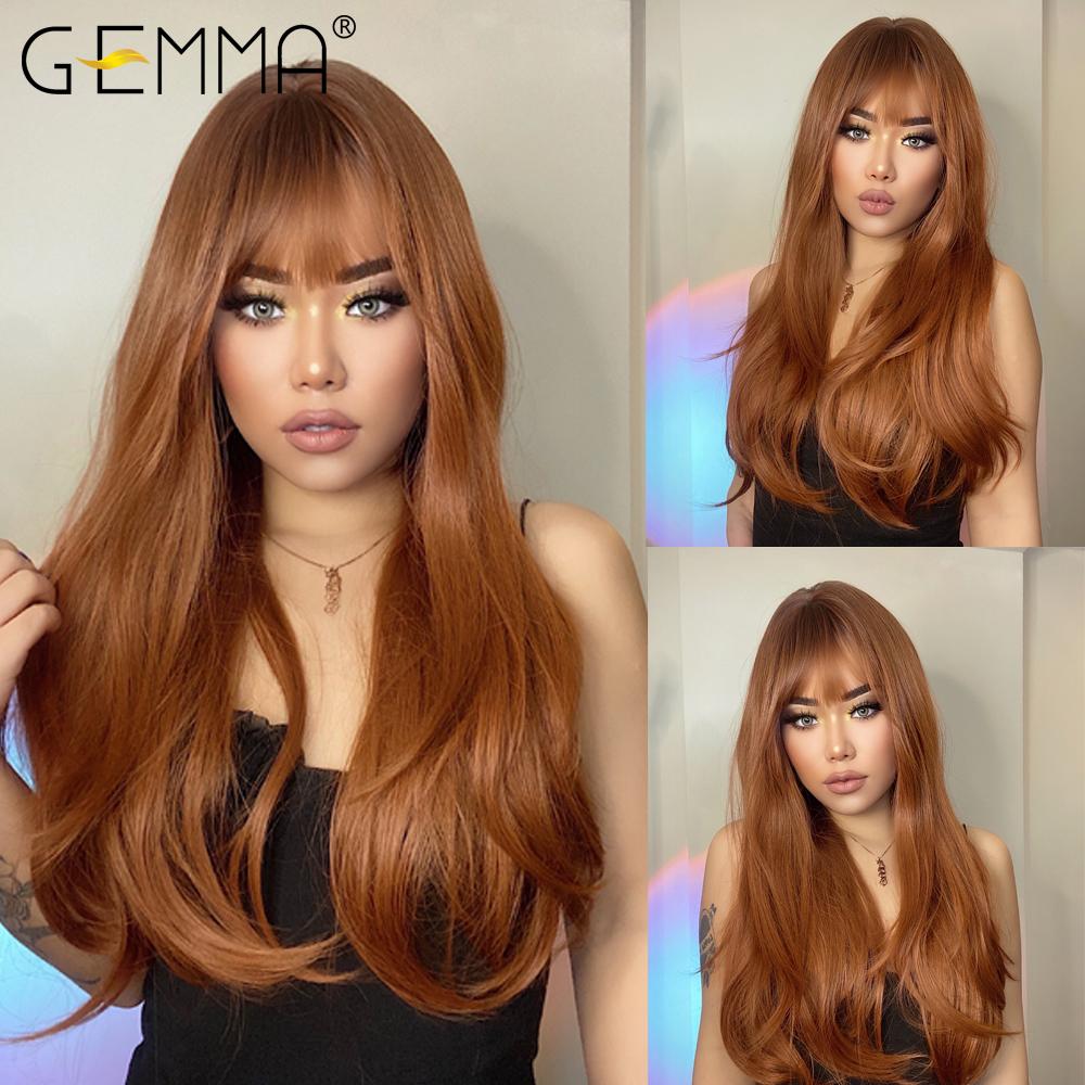 GEMMA, красные, коричневые, медные, рыжие, длинные прямые синтетические парики для женщин, парики с естественной волной и челкой, термостойкие волосы для косплея LC5056-1