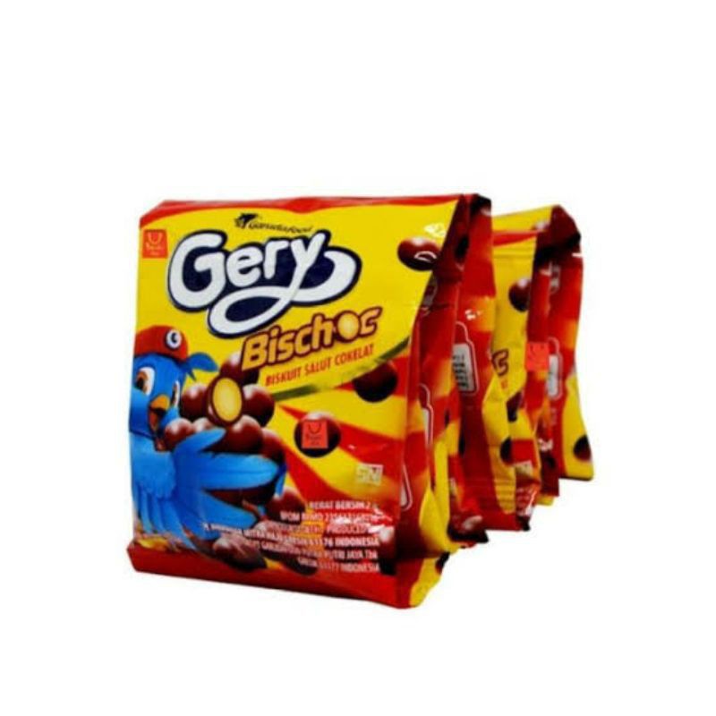 Gery Bischoc 7 gr x 10 merupakan bola biskuit yang dilapisi cokelat. Dengan kelezatan biskuit cokelat yang renyah di luar dan di dalam, Gery Bischoc adalah camilan lezat yang disukai oleh anak-anak yang sangat mudah ditemukan di dekat kantin rumah atau sekolah Anda.