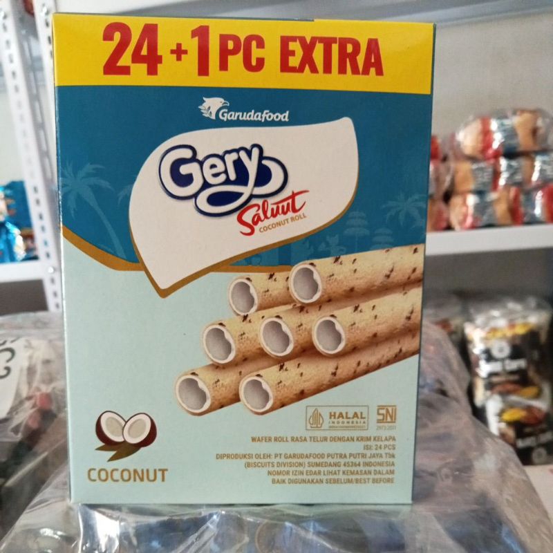 Gery Coconut Roll, stik wafer seru dengan rasa kelapa di luar dan di dalam, memberikan kenikmatan maksimal, membuat ingin makan lagi dan lagi!!