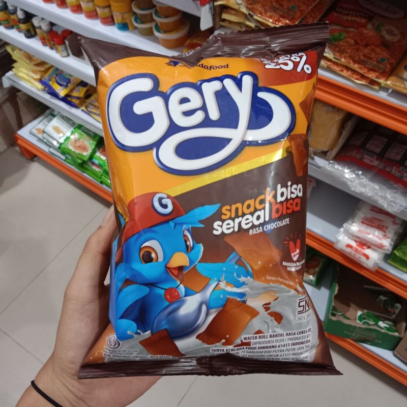 Gery Snack Cereal, wafer berbentuk bantal dengan rasa coklat yang lezat, makin seru asyiknyaaa..! Selain cocok untuk cemilan di waktu luang, Gery Snack Cereal dapat dijadikan sarapan lezat di saat lapar. Mau tahu caranya? Pertama, masukan Gery Snack Cereal ke dalam mangkuk. Kemudian, tuangkan susu (baik susu putih ataupun susu coklat) diatasnya. Gery Snack Cereal siap dihidangkan. Mudah bukan? Selamat menikmati Lezatnya Gery Snack Cereal!✨
