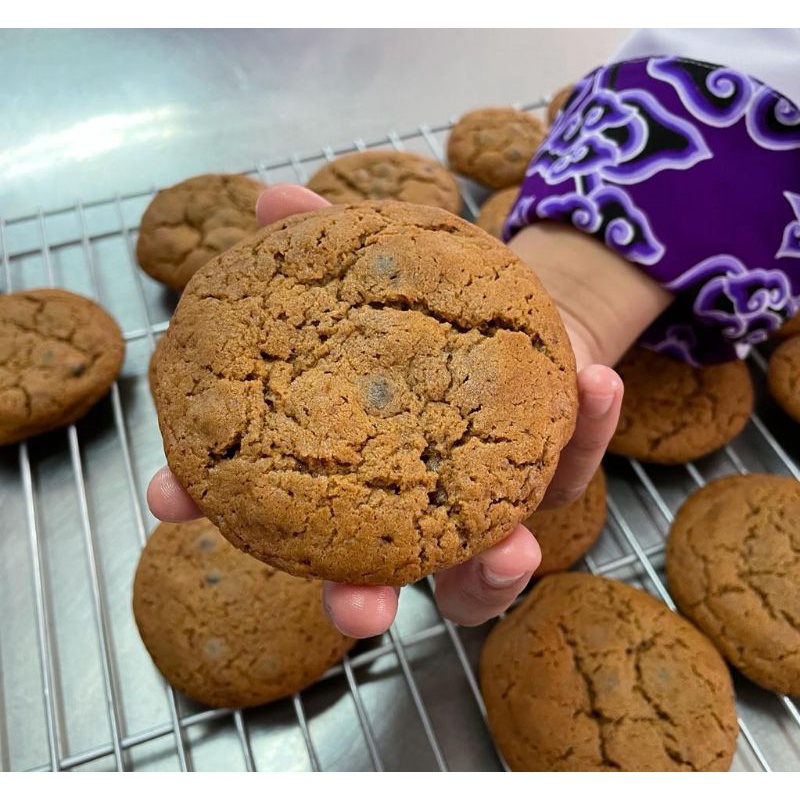 Cookies ini memiliki banyak potongan cokelat di dalamnya! Dengan tekstur yang sedikit garing di bagian luar dan kenyal di bagian dalam.