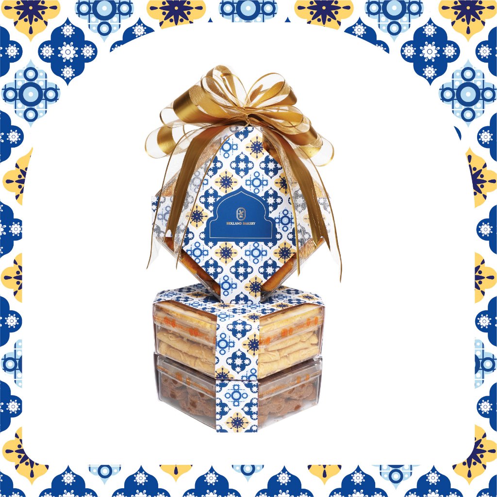 Berbagi bingkisan di tahun baru Lebaran dengan produk istimewa dari Holland Bakery. Terdapat Nastar, Kaasstengels, dan 1 macam pilihan kue kering toples segi 8 dengan desain yang menarik.