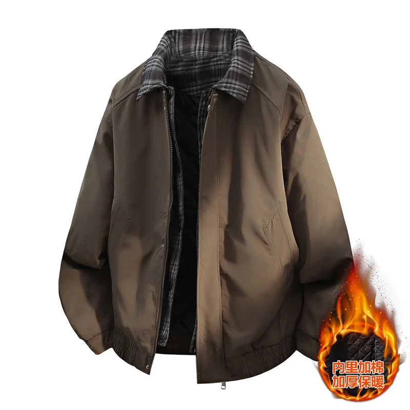 GIOIOMская хлопковая куртка, осенне-зимняя новая стильная утепленная теплая свободная повседневная мужская куртка в клетку с лацканами