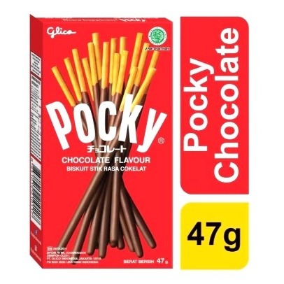 Glico pocky, biskuit stik renyah dan panjang berlapis krim rasa cokelat.