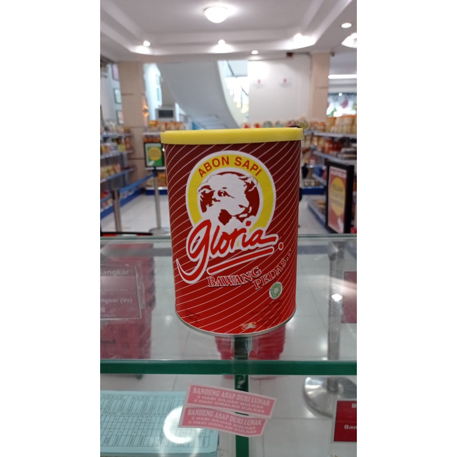 Abon merek GLORIA terbuat dari daging berkualitas sangat praktis buat teman makan, berat produk: 250gram