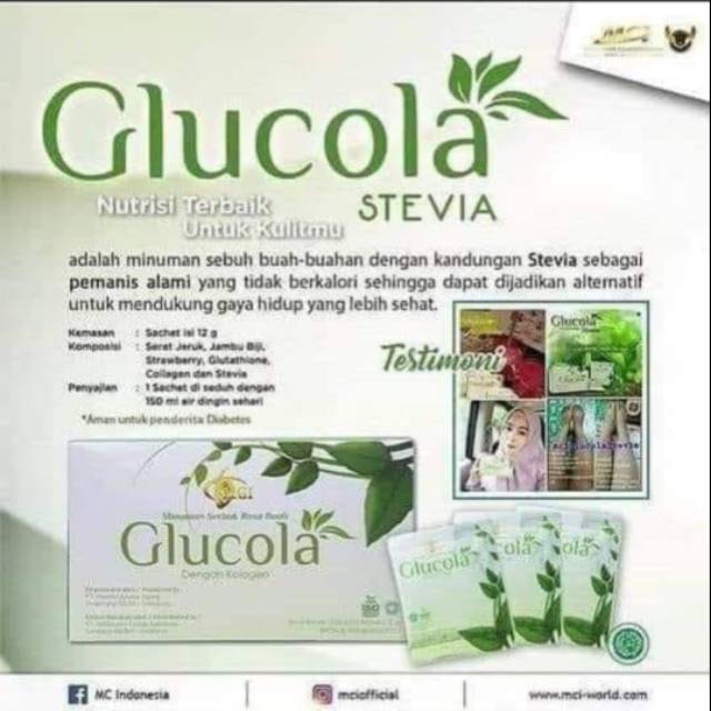 Manfaat Glucola Stevia selain untuk membersihkan kulit, glucola stevia dikenal sebagai “antibodi & antioksidan” karena dapat mengikat radikal bebas dari polusi udara, asap nikotin, pestisida dan lainnya, juga akan memiliki anti oksidan dalam tubuh, seperti Vitamin C dan E dalam bentuk aktif, sehingga dapat bekerja secara optimal. Kandungan Gluthatione digunakan untuk perawatan medis oleh dunia sebelum dokter, karena sangat baik dan tidak menyebabkan ketergantungan.
