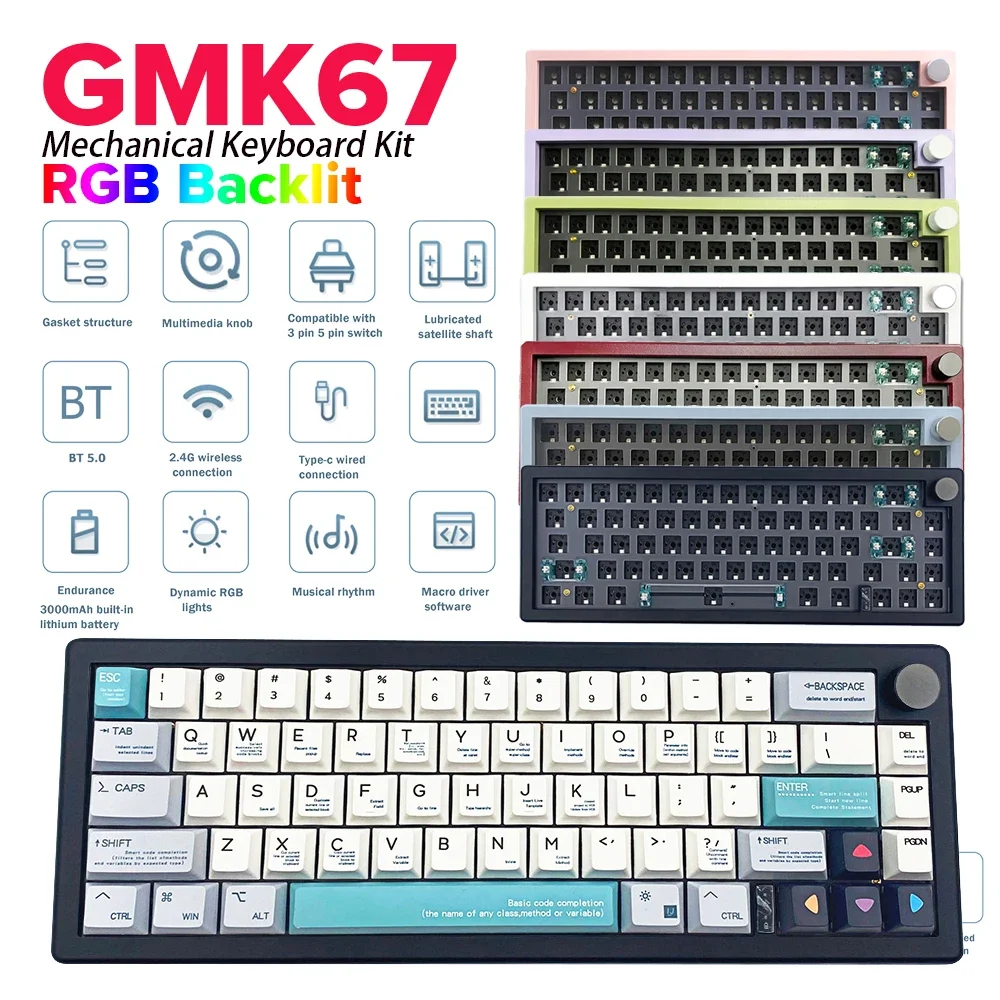 GMK67 Customized Mechanical Keyboard Kit RGB Backlit Bluetooth 2.4G Wireless Keyboard Hot Swappable Gaming Keyboard for Desktop
