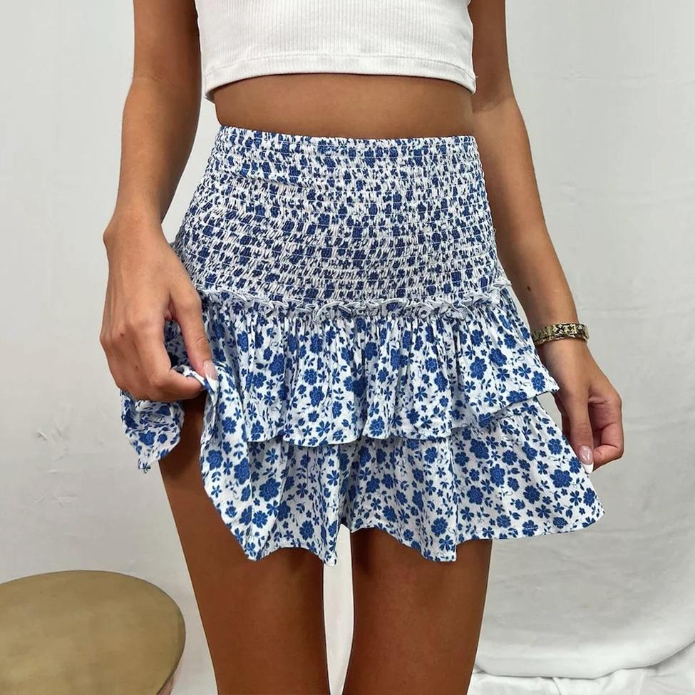 GMXIA Женская юбка Плиссированная юбка с принтом пеплум Юбка Модная цветочная юбка в стиле бохо XL