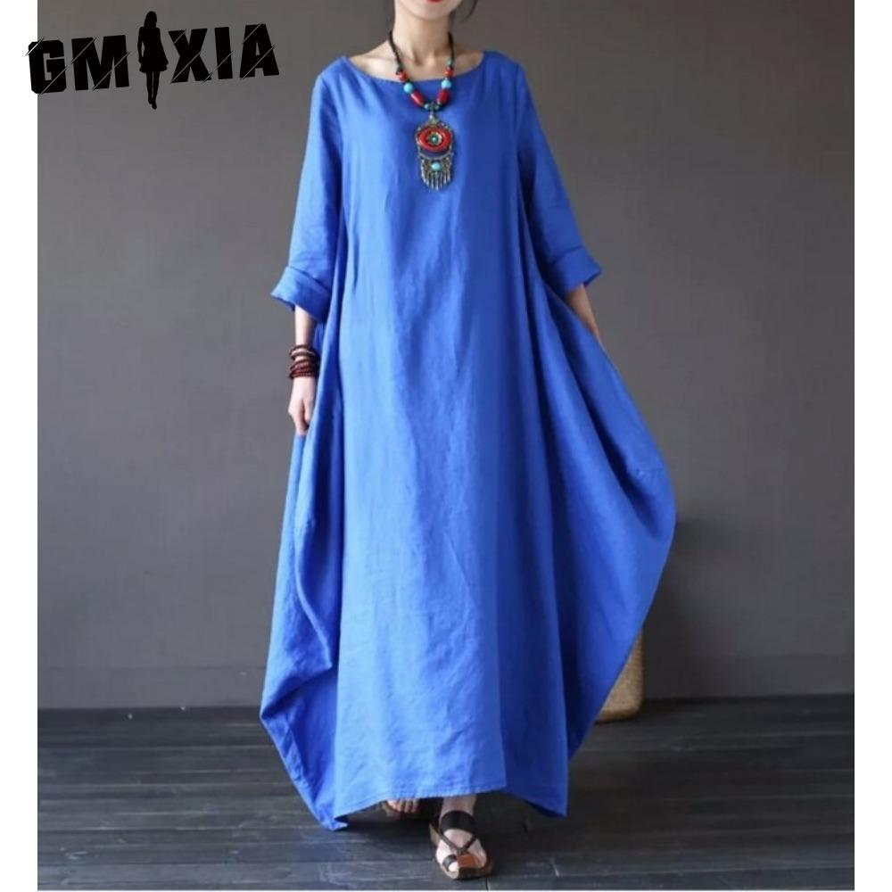 GMXIA Женское длинное свободное летнее повседневное платье из льна и хлопка, больших размеров XXXXXL синий