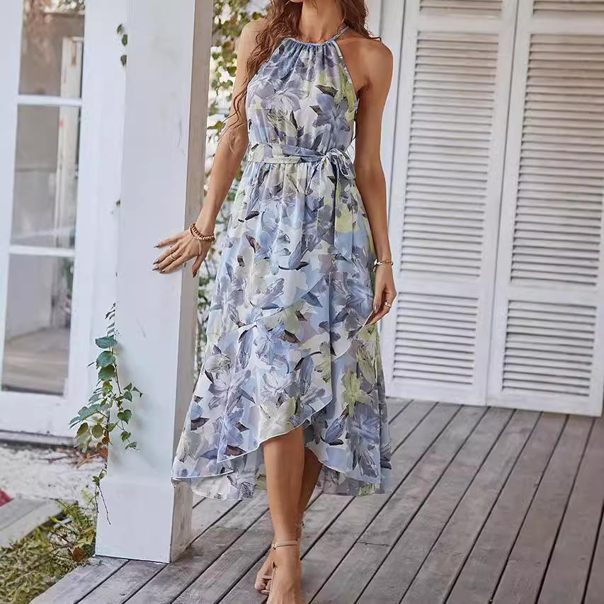 GMXIA Модное платье в стиле бохо с бретелью через шею, летнее повседневное праздничное платье XL синий
