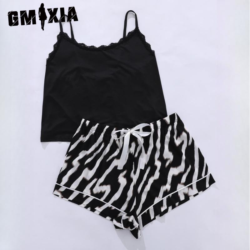 GMXIA Пижама женская летняя большого размера, свободная, сексуальная, на бретелях, шорты, домашняя одежда из двух частей XXXXL