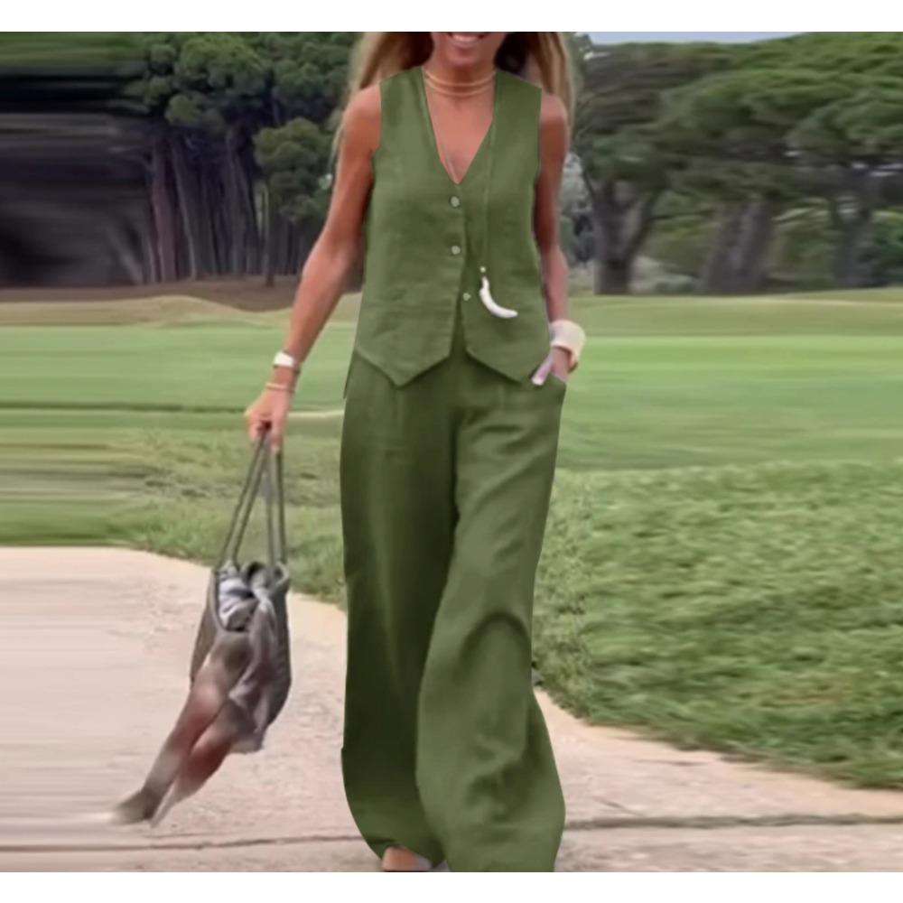 GMXIA Повседневный и Модный Однотонный Комплект из Жилета и Длинных Брюк Коллаж и Пэчворк Комплект из двух предметов XXXL армия зеленый