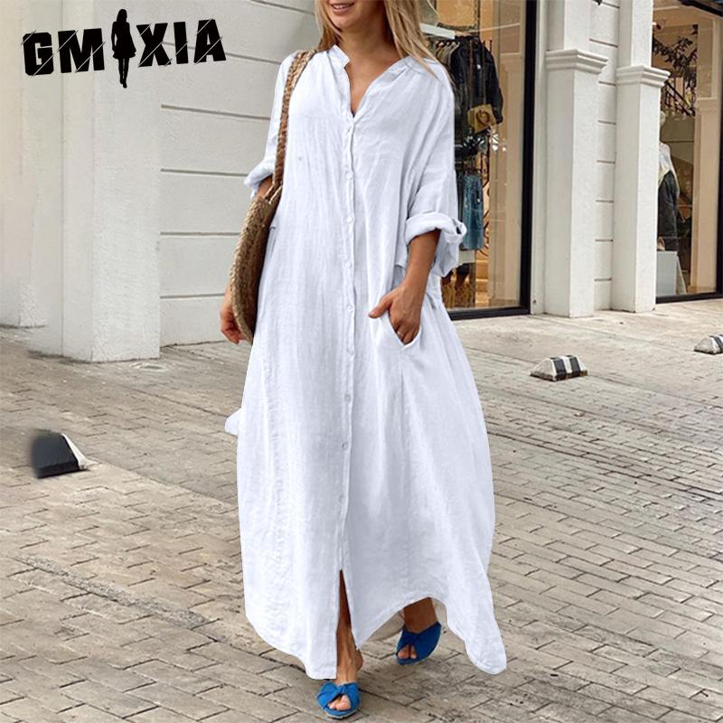 GMXIA женская мода лето весна однотонный принт с длинным рукавом стоячие повседневные платья