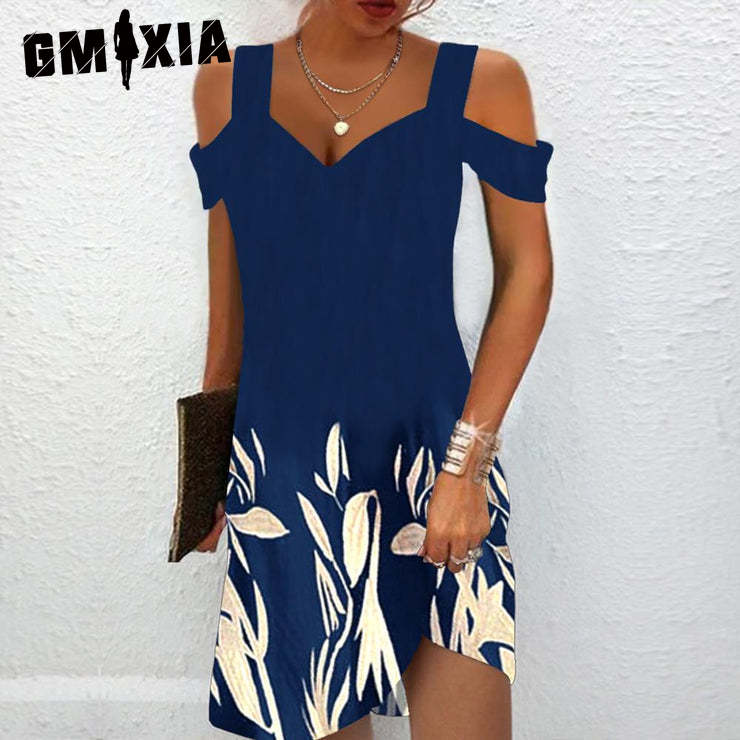 GMXIA женская мода лето весна v-образным вырезом повседневные сексуальные женские без бретелек с рукавами и принтом облегающие платья
