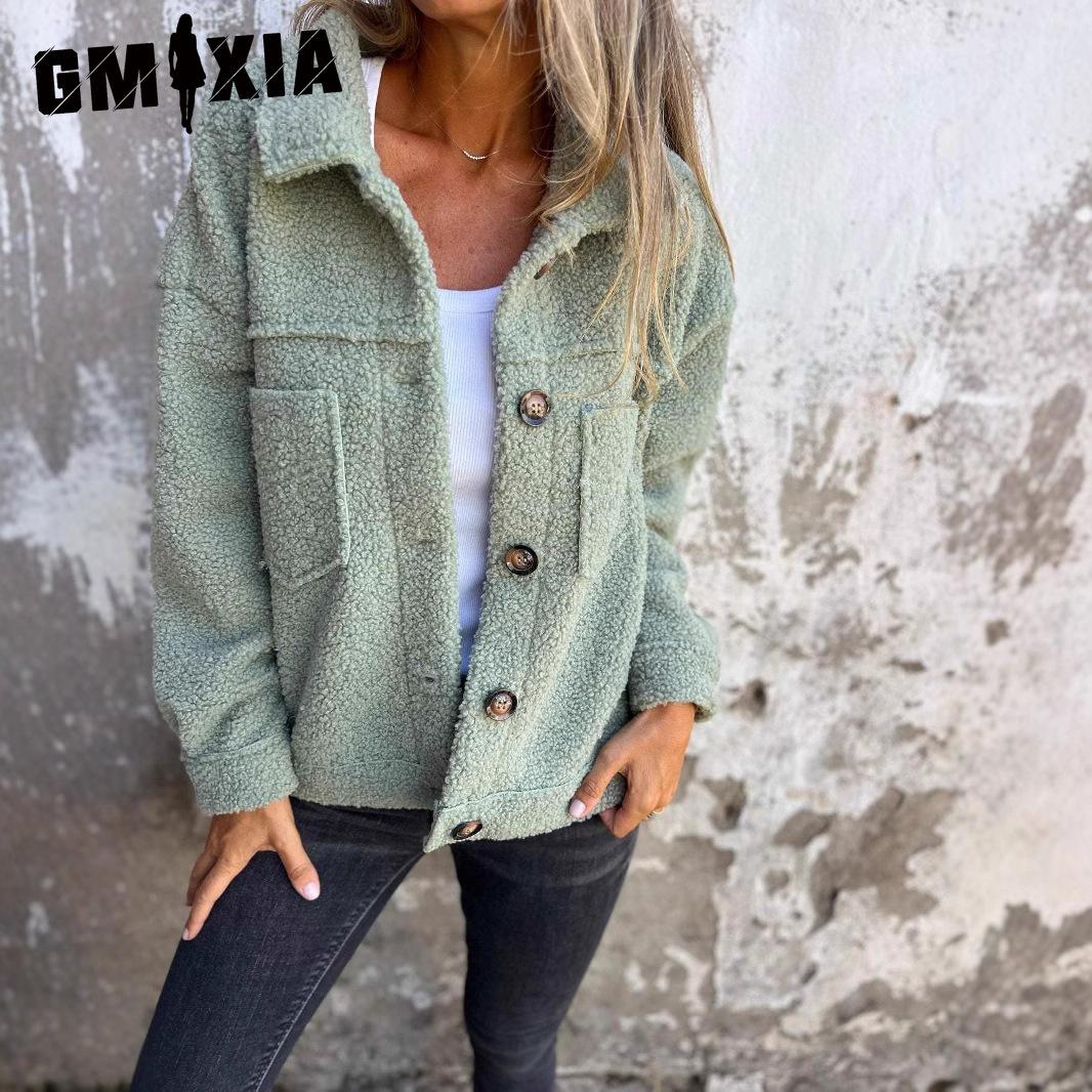 GMXIA женские винтажные повседневные куртки и пальто с решетчатым принтом осень-зима с длинными рукавами и воротником-поло L зелёный