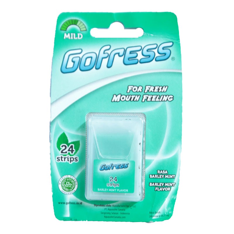 Gofress dengan bentuk film strip yang unik mampu menjaga dan mengembalikan kesegaran napas dan kesehatan mulut di setiap aktivitas. sebagai Germ Protection, Gofress mampu melindungi mulut dari kuman penyebab bau mulut. Bahan aktif Menthol dan Xylitol.