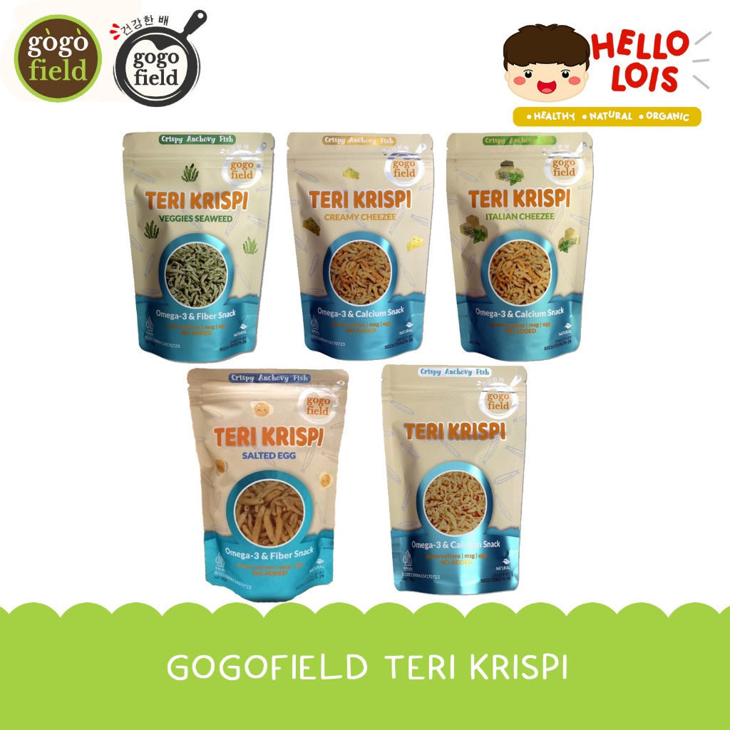 Gogofield teri krispi adalah snack ikan ter yang dibuat menggunakan ikan teri segar dengan bumbu pilihan agar lebih krispi, menambah selera dan dapat dikonsumsi dari anak-anak hingga orang dewasa.