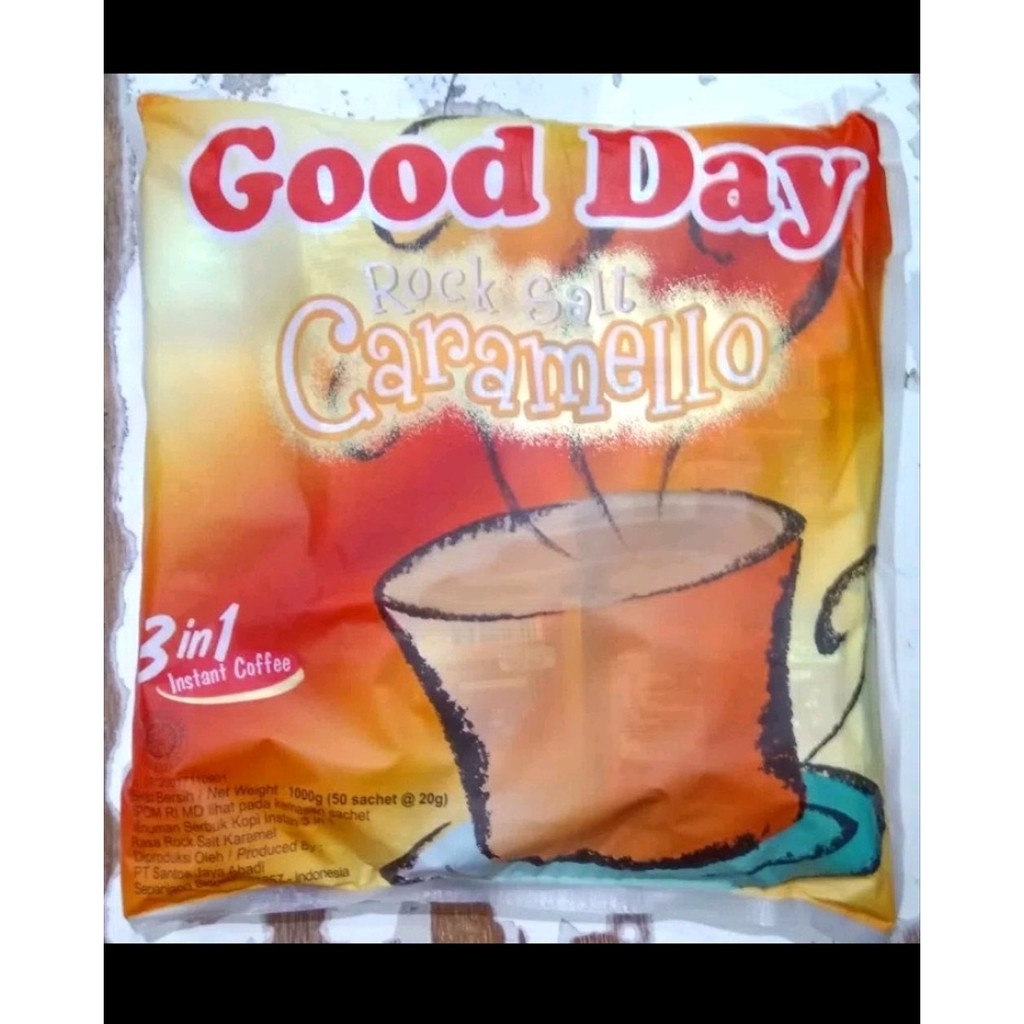 Good day kopi instant 3 in 1 rasa rock salt caramello. Good day rock salt caramello, kopi dengan aroma karamel yang menggoda dan rasa gurih.