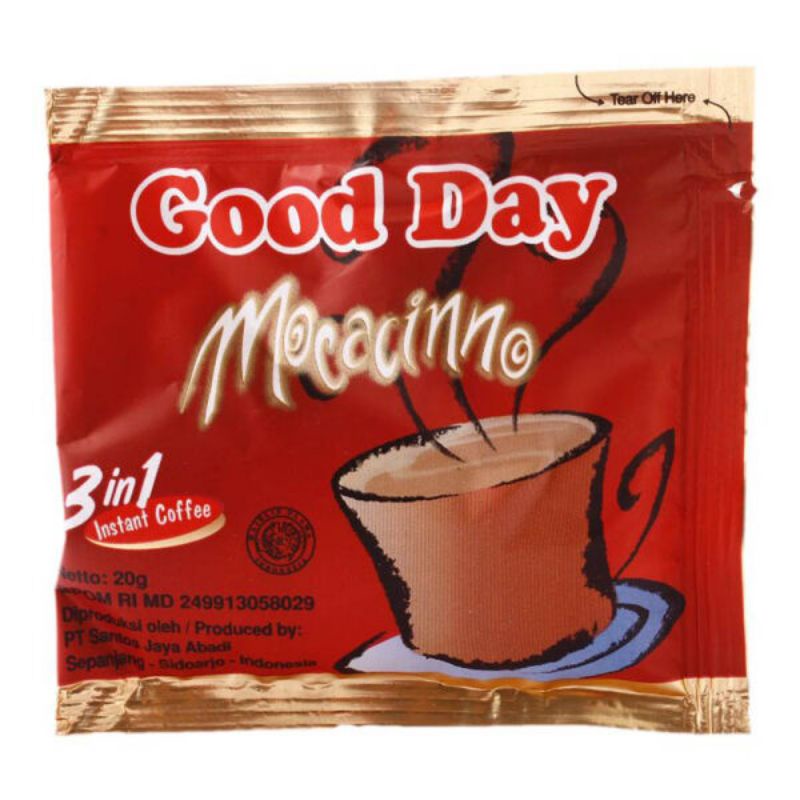 Good Day Moccacino 20gr merupakan kopi instan yang terbuat dari perpaduan kopi, gula, dan krimer dalam satu saset. Rasa Mocacinno yang istimewa sangat pas dinikmati dalam setiap momen hangatmu bersama teman atau orang kesayangan. Kemasannya yang praktis memudahkan Anda untuk membawanya kemanapun Anda berada.